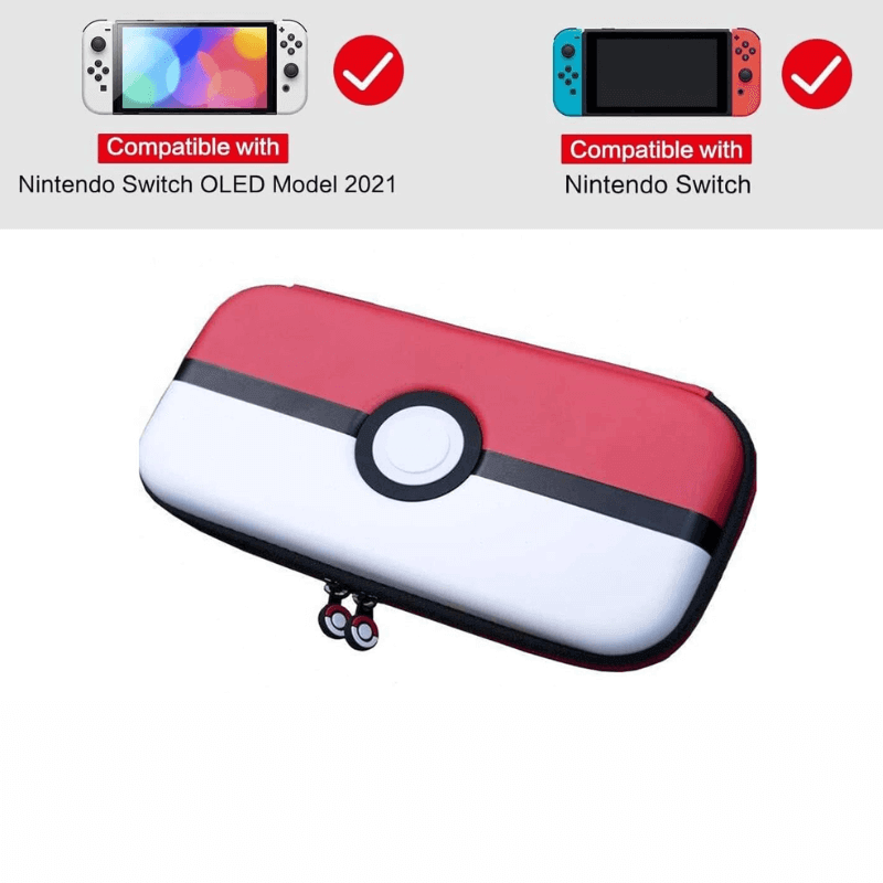 Estuche duradero y liviano para la consola Nintendo Switch con almacenamiento interno e ilustraciones de Pokémon por dentro y por fuera. (Nintendo Switch no incluido). Estuche a todo color rojo y blanco Almacenamiento interno para tarjetas de juego de Switch; Estuche rígido duradero que sostiene y protege el Nintendo Switch.