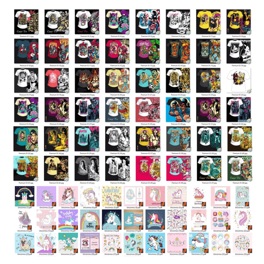 Una súper colección de impresiones de camisetas con arte y vectores en formatos CDR, PSD, AI, EPS, PNG, JPG y PDF. Acceso de por vida para descargar archivos cuando sea necesario, utilizando un correo electrónico de Gmail exclusivamente para acceder a la unidad.